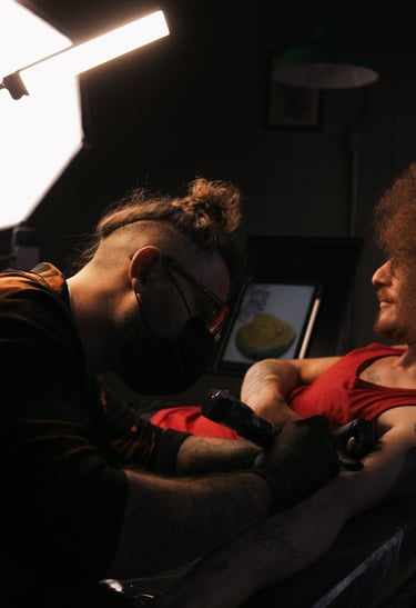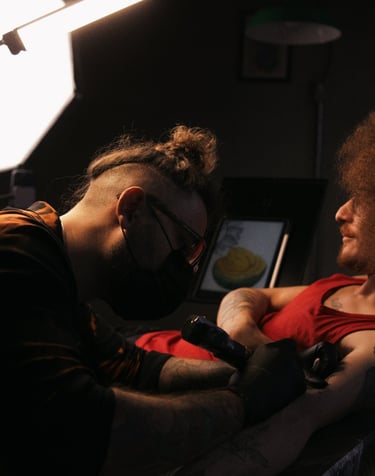 Sou apaixonado por luz e cor. Trago minha bagagem visual para criar tatuagens com estudo, dedicação e respeito. Cada projeto é desenvolvido minuciosamente, da primeira ideia ao resultado final.